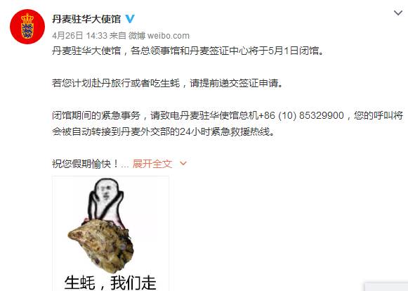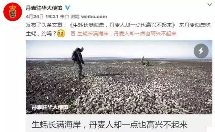 周一丹麦驻华大使馆发出“求助微博”,称太平洋生蚝入侵丹麦海岸,由于没有天敌,繁殖迅速以致于对当地生态造成严重威胁,连丹麦自然保护局都拿它们没办法。